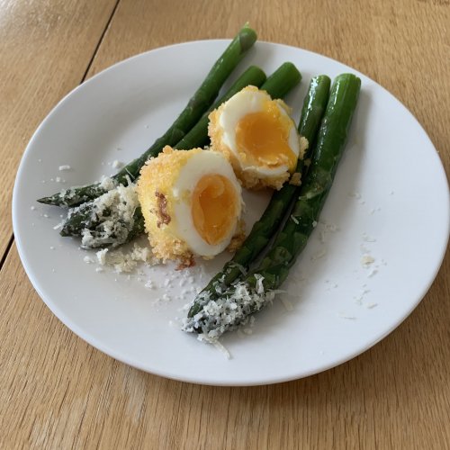 For those who have not been trained by Michel Roux, you may wish to consider replacing the deep-fried pancetta-crumbed egg with a poached egg, sprinkled with crumbled crispy bacon.