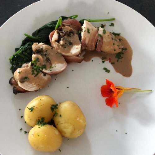 A fresh, simple to cook stuffed chicken dish in a parsley and port-based sauce that can be prepared in advance.